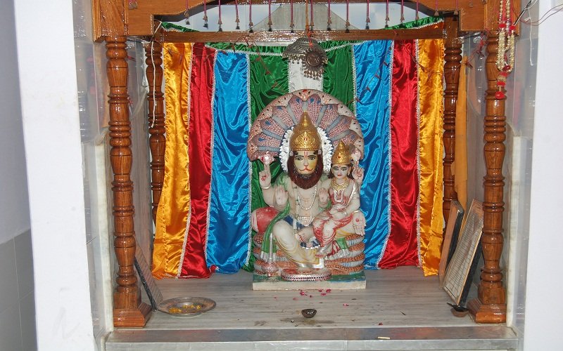 अपने कुल देवता भगवान श्री नरसिंह जी की लक्ष्मी जी के साथ सोम्य रूप में , शेषनाग के आसन पर विराजमान की प्राण प्रतिष्ठा दिनाकं 25-01-2005 ( शुक्ल पक्ष पूर्णिमा ) को मन्दिर के पुजारी स्व. श्री महाबीर प्रसाद गौड़ जी की देख रेख में मंत्रोचार के साथ की गई | प्राण प्रतिष्ठा से पहले पाँच आचार्यों द्वारा पाठ किये गये फिर शेषनाग के आसन पर विराजमान श्री नरसिंह लक्ष्मी की नगर परिक्रमा कलशयात्रा के साथ की गई | परिक्रमा पश्चात जांगिड ( कौथकुथलिया शासन) के कुल देवता श्री नरसिंह जी की लक्ष्मी जी के साथ संस्कृत श्लोको व मंत्रोच्चार द्वारा यज्ञ कर के प्राण प्रतिष्ठा की गई व प्राण प्रतिष्ठा व यज्ञ उपरान्त सभी भक्तजनों को प्रसाद वितरण किया गया|